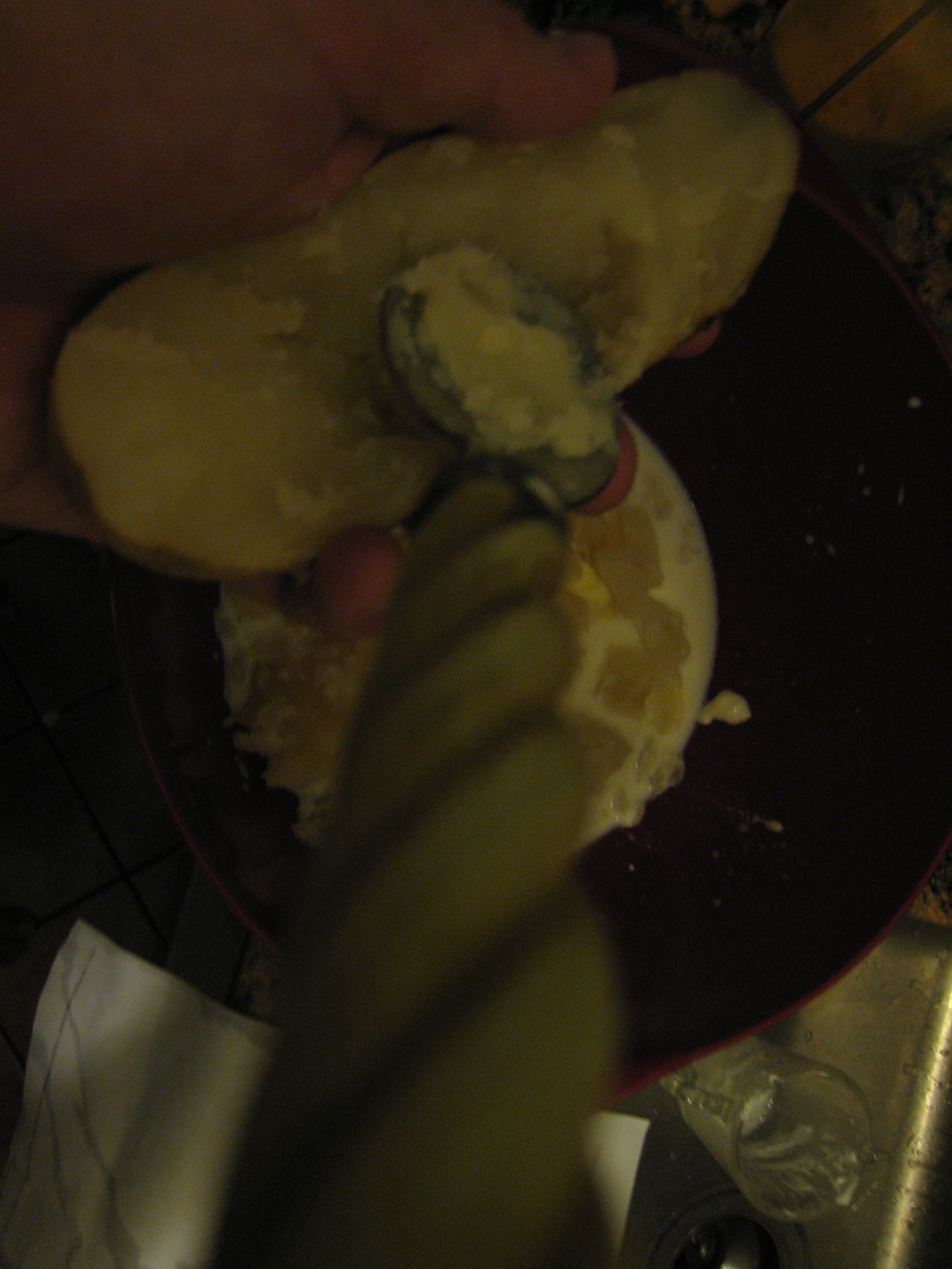 OK. First thing you’ll wanna do is figure out which end of the baguette you want to be the head and which you want to be the tail end. The tail end should be more narrow, but if you’re working with a perfectly symmetrical baguette, then don’t sweat it. Just take a moment to marvel at its beautiful and flawless symmetry. At the tail end, use a serrated (here I am thinking it was spelled “seraded”) knife and slice some bread off to make a narrow back side. Be deliberate and fearless with your cuts because if you go in weakly, the bread will tear and it’ll look bad. Sharks smell fear!